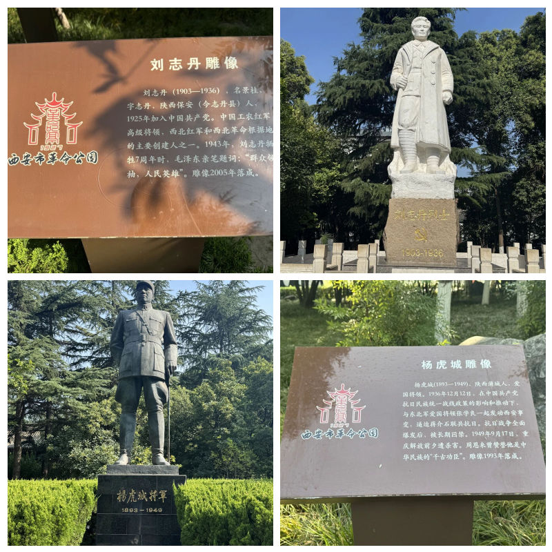踏入公园,目光便被两处庄严肃穆的身影吸引——杨虎城将军与刘志丹烈士的雕像静静矗立,无声诉说着那段波澜壮阔的革命岁月。