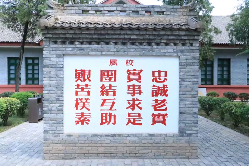 大家进入西北民大旧址内参观学习,最先映入眼帘的是一堵老式照壁,上面刻有:“忠诚老实,实事求是,团结互助,艰苦朴素”的16字校风,清晰展现了西北民大师生的精神风貌。